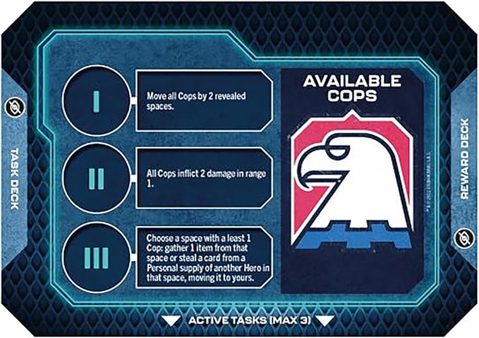 - This expansion introduces a game variant: the cop negotiation. In addition to their missions, the Heroes must also resolve tasks given during the game by Hauk, if they want to get the president pardon at the end.