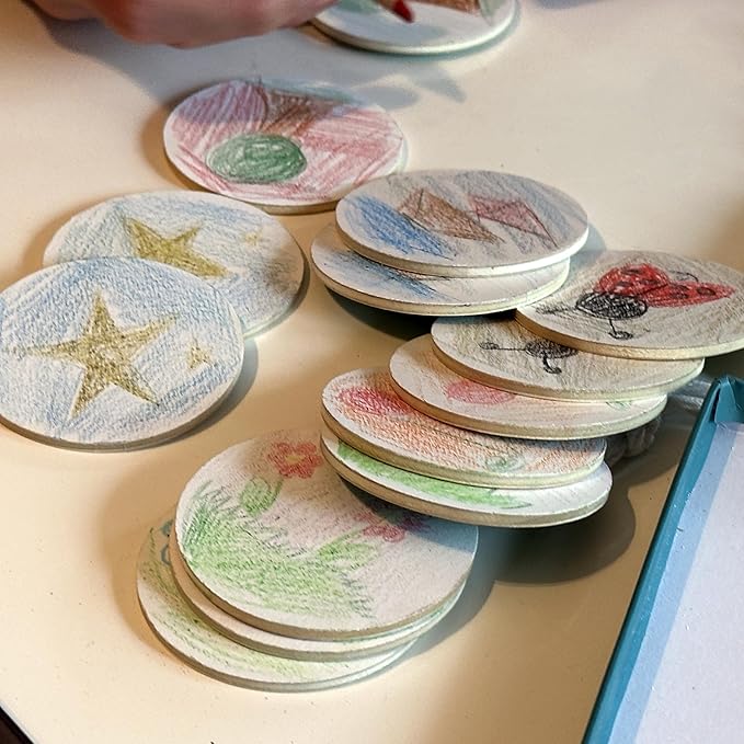 - BUILT TO LAST: Made of durable 3mm basswood. Practically unbreakable. Each of 36 blank cards is 2.2" in diameter. Thick cards are easy fit into kid's hands. Enjoy a long-lasting and reusable memory card game maker set that can be used for years and generations. Could be known also as toddler memory game, memory game for toddlers 2-4 years, blank board game, kids memory game, kids matching game, memory matching game or make your own board game kit.