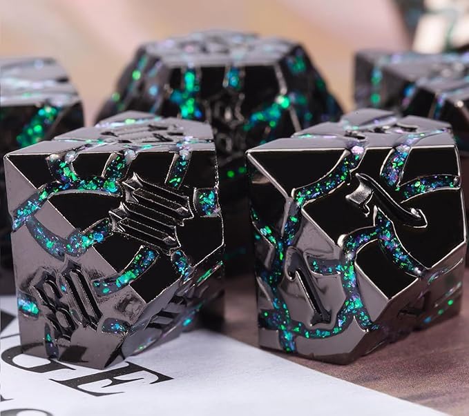 - Excellent Craftsmanship - metal dice Crackle Design design, the dice is having the cool engraving. All of these elements are carved on the metal dnd dice set with exquisite craftsmanship