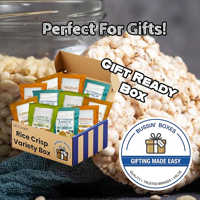 Rice Crisps Variety Pack – Multi-Grain Snack Bags Assortment – 30 Count Healthy, Low Calorie Snack Box for Adults and Kids Assembled by Bussin Boxes
