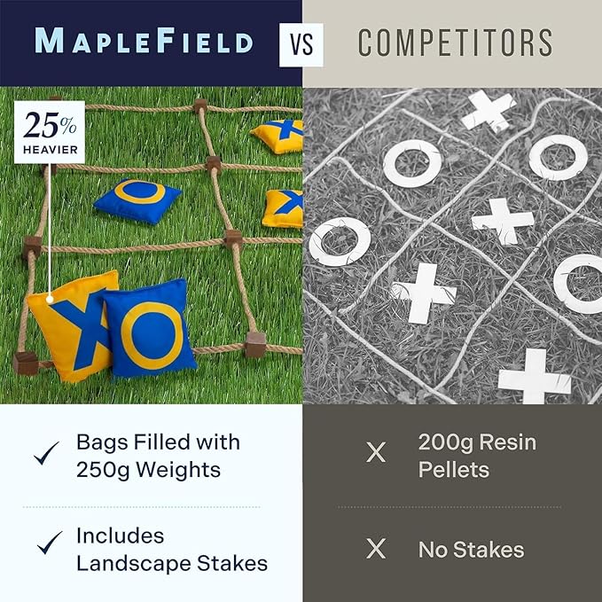 - Tic Tac Toe Cornhole Fun: Experience the thrill of friendly competition with Maplefield's Outdoor Tic Tac Toe set, an engaging bean bag toss game designed for both kids and adults who enjoy strategy and outdoor games