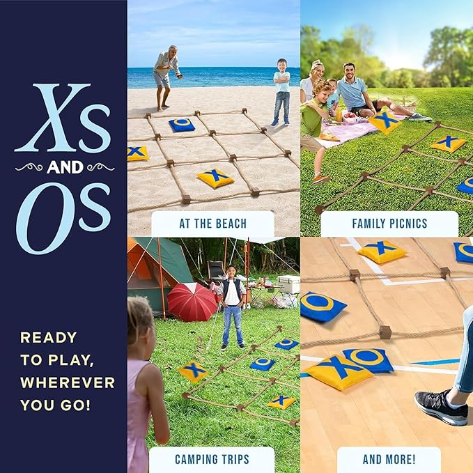 - Effortless Setup And Portability: Simply lay the jute rope tic tac toe outdoor game board on the ground, secure it with stakes, assign Xs and Os, and start the toss game! The set includes a convenient carrying case for easy storage and transport, perfect for outdoor games for adults and family gatherings