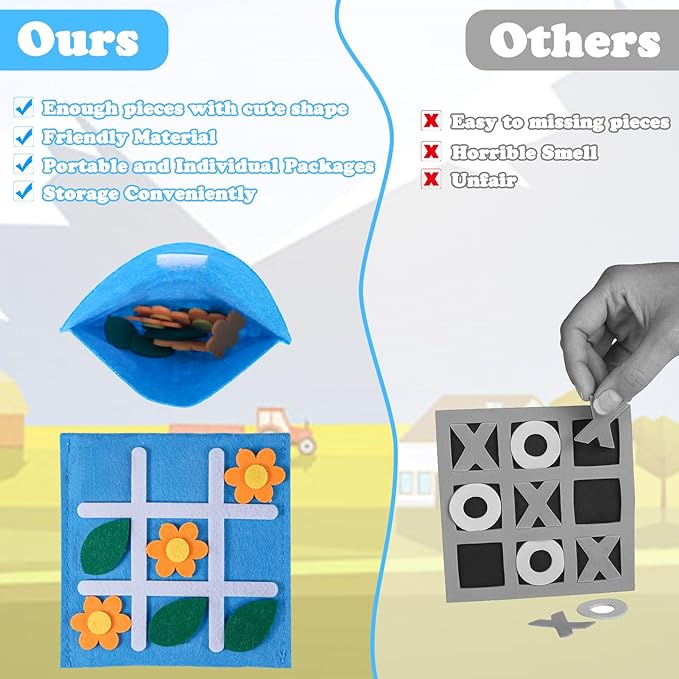 - Portable Storage Pocket Design: Each Tic Tac Toe board game comes with pocket for storage and avoid lossing. High-quality felt material makes it perfect for goodie bags stuffers. Great travel toys and perfect for road trips