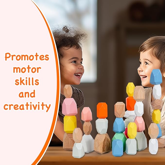 OPPA 36PCS Wooden Stacking Rocks, Montessori Sensory Toys for Toddlers, Building Rocks Stones Games,Stacking Stones for Kids Gifts
