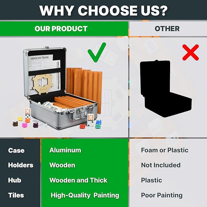 - Premium Mexican Train: Full Set with Holders and Simple instructions make it easy for 2-9 players to play together