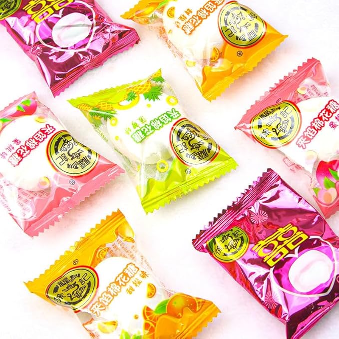 - This brand of marshmallow comes from a big brand manufacturer, and it is sold in large and small supermarkets in China. It is a kind of candy that is necessary for the New Year. This marshmallow is filled with filling, mixed flavors independent small package, flavors are: peach, pineapple, sweet orange, lychee.