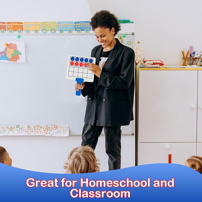 - 【Hands-On Math Games】 Students can use math counters to solve math problems on the answer board and hold up a handheld paddle to show their answer. The magnetic ten frame set can develop children's hands-on ability, counting skills, math skills, and can also mobilize children's enthusiasm.