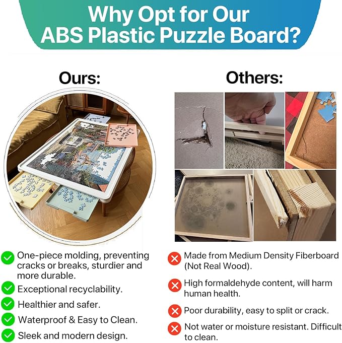 - Sturdier & More Durable: Made through integral injection molding with high-quality ABS Plastic material. The innovative structure and materials make our puzzle board sturdier and more durable than the wooden ones, resistant to breakage and damage, and have a longer service life.