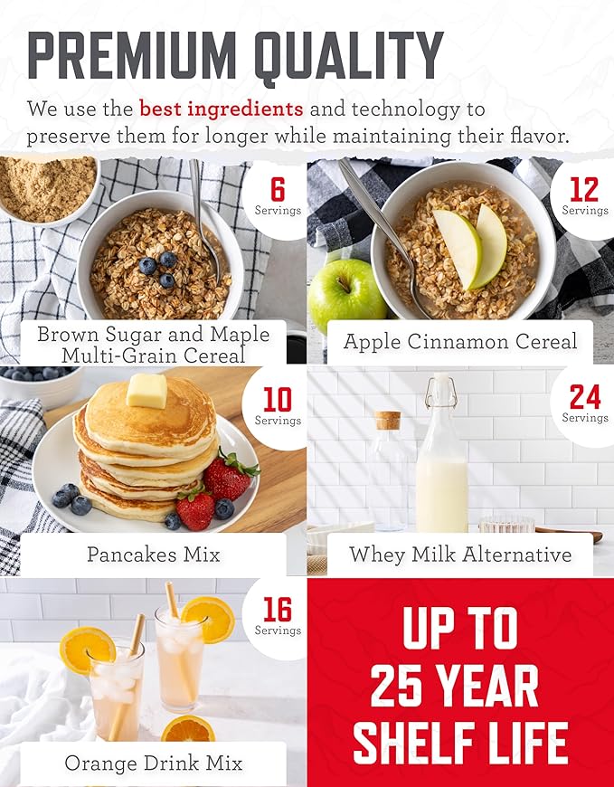 - STORED FOR THE FUTURE: Our bucket offers up to 25 years of shelf life, ensuring your emergency food supply stays fresh. Plus, its stackable design fits conveniently in your pantry, car, or backpack, making it ideal for long term food storage.