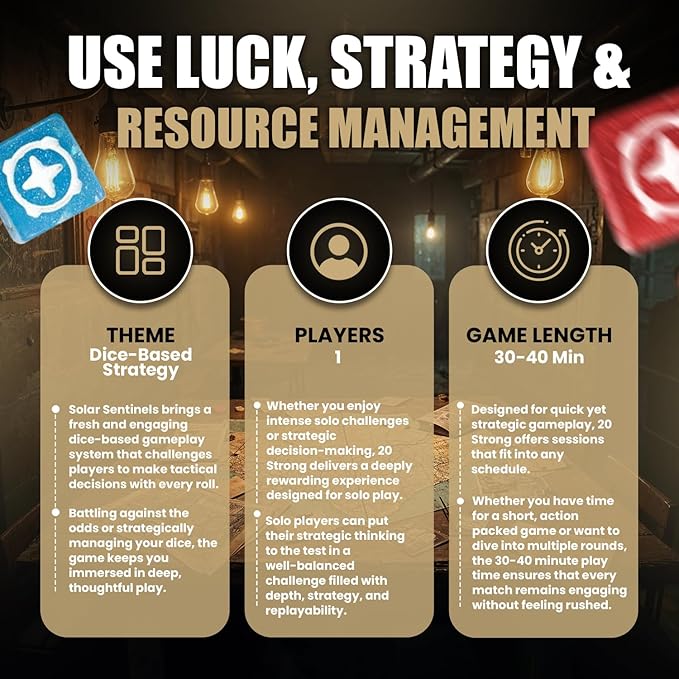 - ALL-IN-ONE GAMING SET: Comes complete with 20 dice and the Solar Sentinels game card deck for immediate, out-of-the-box gameplay.