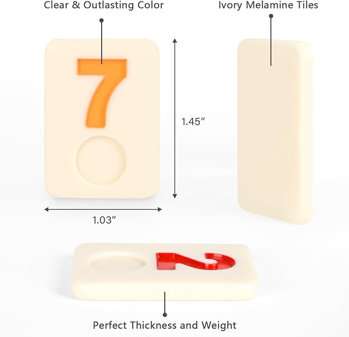 - PREMIUM QUALITY: This rummy tiles are made of premium melamine, sturdy & stone-like with fine texture, the indented and well painted numbers on the tiles will durable rummy tiles.