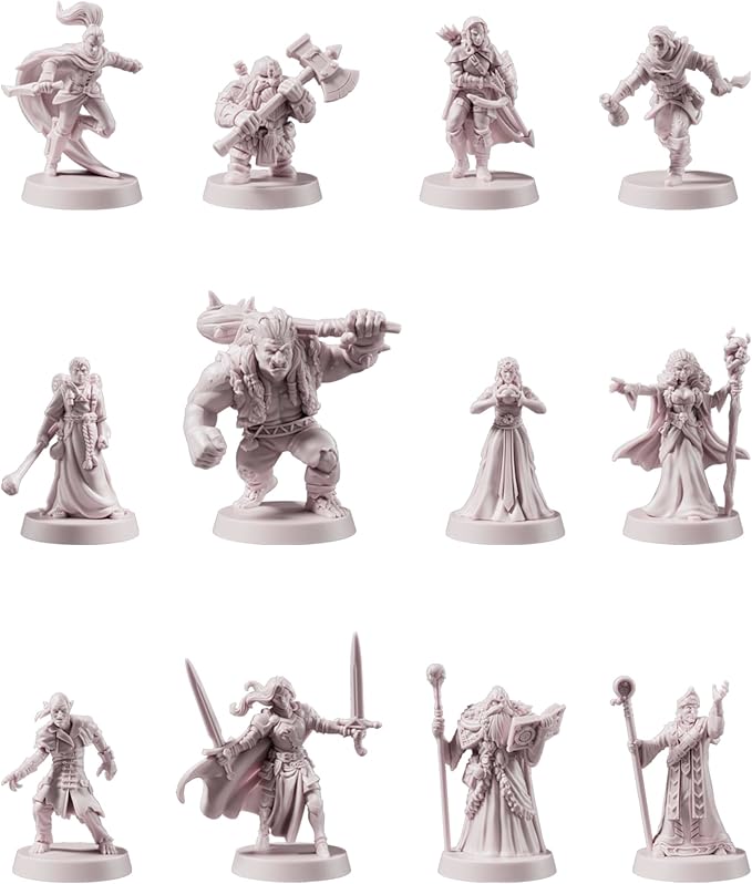 - 12 DETAILED CHARACTER FIGURES: Play as one of 12 powerful characters, including a Prophetess, Wizard, and Thief. Includes 12 Character figures and matching cards that reveal a character’s unique ability