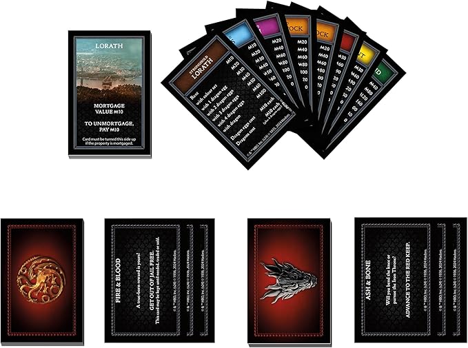 - HOUSE OF THE DRAGON-THEMED MONEY: Includes 102 themed cardboard coins. The last player with coins when all others have gone bankrupt wins