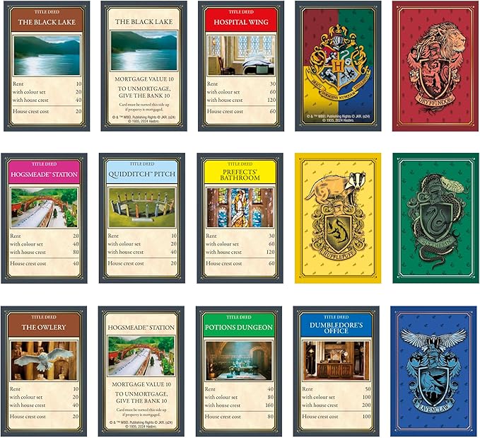- HOGWARTS-THEMED GAMEBOARD: Explore classrooms, common rooms, and other favorite locations in and around Hogwarts castle! The more a player explores, the more house points they’ll receive from other players