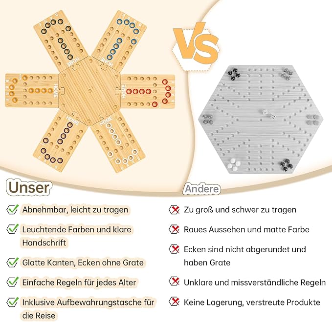 - 【Quick to Install & Portable】This wooden board game set features a patchwork design that allows for quick assembly in just a few seconds to get the game started. Disassemble the board after the game and carry it in the included velvet bag. Perfect for carrying around as a relaxing game outdoors or camping. This game truly captures the essence of classic marble games, while its portable and marble board game design sets it apart from others on the market