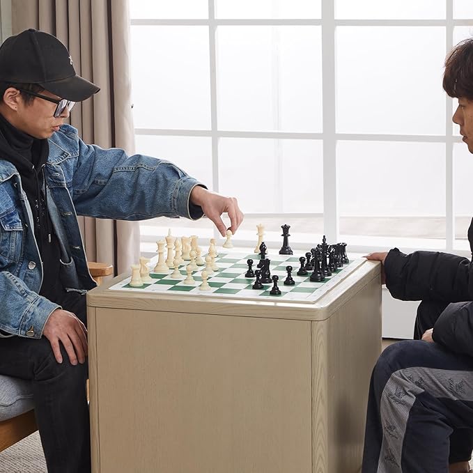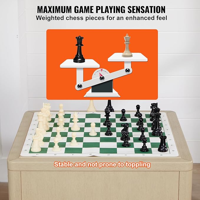 - Weighted Chess Pieces: The precision-made chess pieces have built-in iron blocks for added weight, It also equipped with non-slip felt bottoms, stable and durable, ensuring each of your moves is steady and composed.