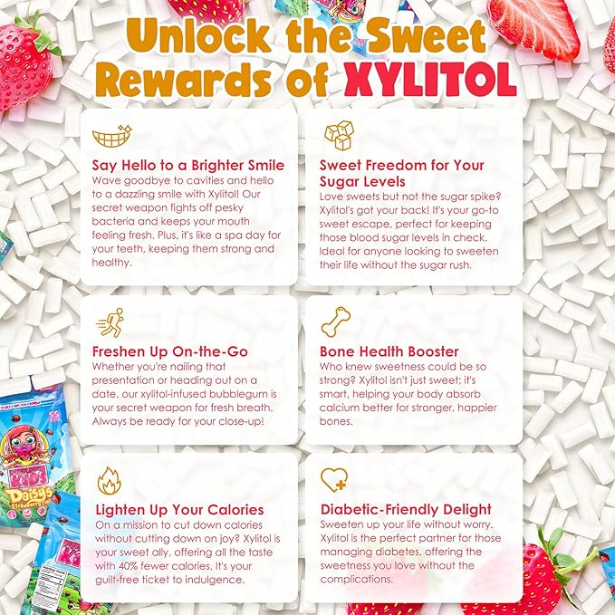 - ๐ญ SWEETNESS WITHOUT THE SUGAR RUSH - Bubblegum Kids is crafted for kids and kids at heart. Dive into a world of unbeatable sweetness with every chew, wrapped in a strawberry flavor that lasts!