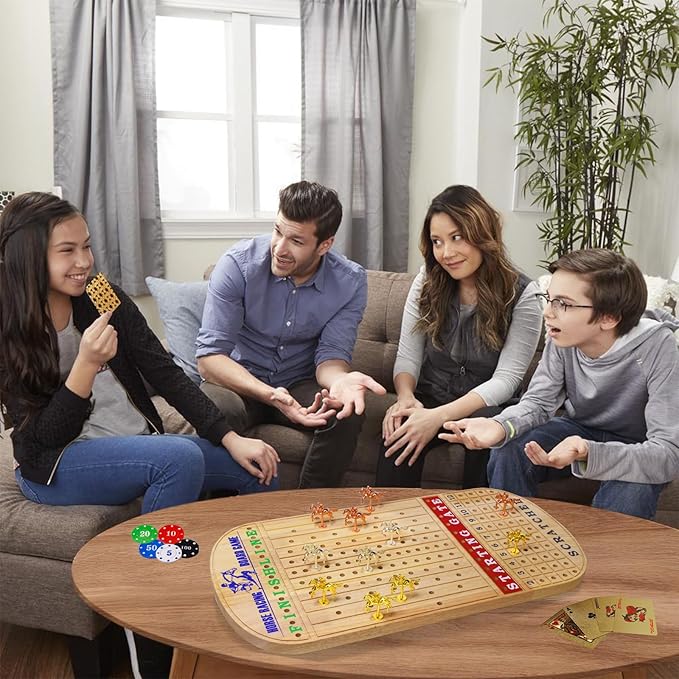 - 【Exciting Horse Racing Experience】Horse racing games have a long reputation which have been proven to be an effective way to relieve stress and improve mental well-being. Its fast-paced and engaging gameplay will let you or friends or family relax and bring more fun. The realistic metal horses and the exquisite game board will make you feel like you're really at the racecourse and cheer on your favorite horse. The horse racing board game is a great addition to family game night, birthday party or other gathering.