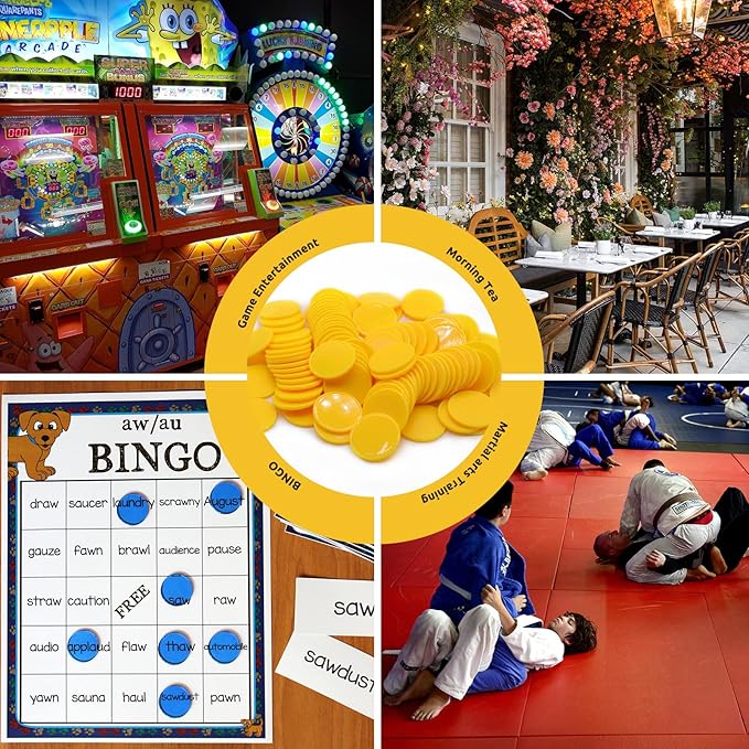 Set of 100 Opaque Plastic Learning Counters Mini Poker Chips Game Tokens with Storage Box (Yellow, 1.58 Inch)