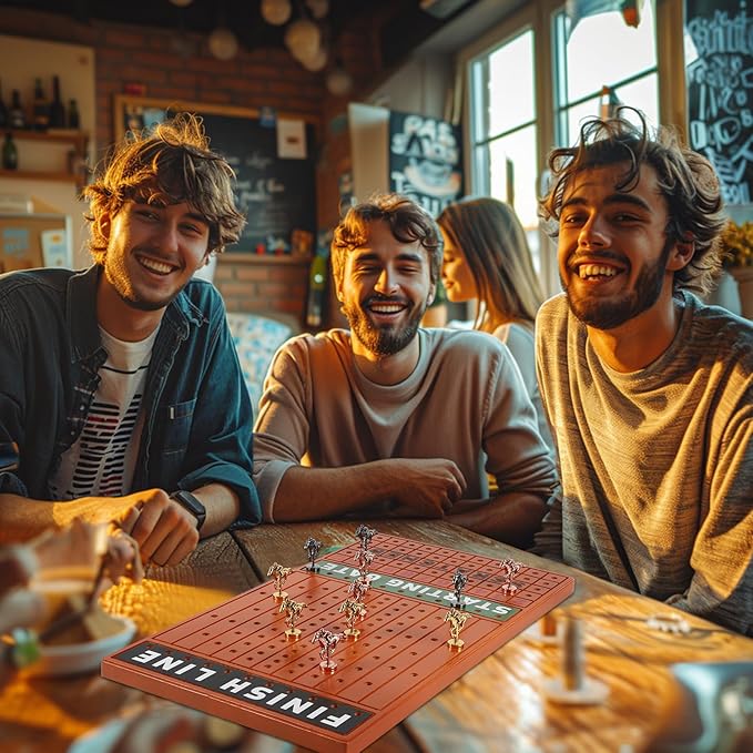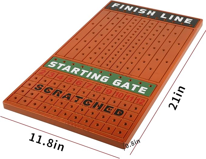 - 【Perfect quality】The horse racing game board is made of high-quality pine wood, and the lines are carved on the wood, which will not be damaged over time. The game board is color printed, which is not easy to fade. In addition, the game board is waterproof and not easy to be damaged. Carefully crafted, the quality will definitely not disappoint you.