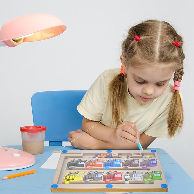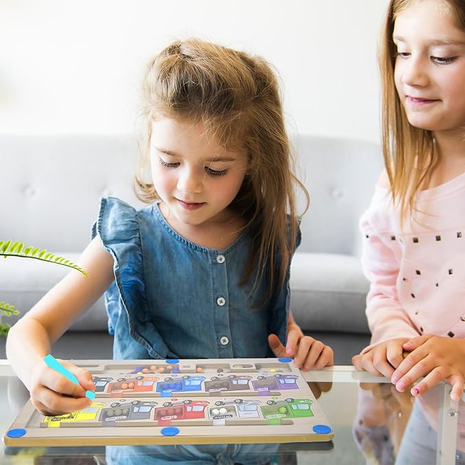 - Montessori-Inspired Learning: The magnetic maze board is a fun way for children to learn and practice counting, color recognition, hand-eye coordination, and fine motor skills. It keeps children engaged for hours. The precision required to move tiles in the maze helps develop flexibility and control, laying the foundation for more advanced motor skills in the future.