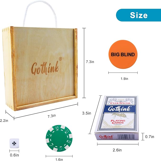 - TOUGH WOODEN STORAGE CASE - Your casino chips and playing cards come packed into a convenient sturdy storage wooden case so you can play for a fun challenge anywhere
