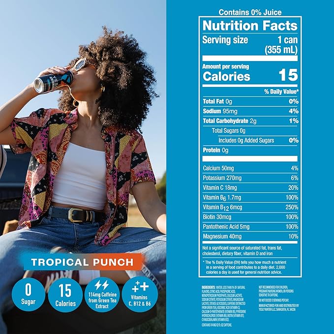 - FRUITY & REFRESHING TROPICAL PUNCH FLAVOR: Enjoy a vibrant blend of tropical fruit flavors in every sip. This naturally flavored sparkling energy drink delivers a refreshing punch of fruity goodness without overpowering sweetness. Whether chilled or at room temperature, it’s a delicious choice for a revitalizing refreshment any time of day.