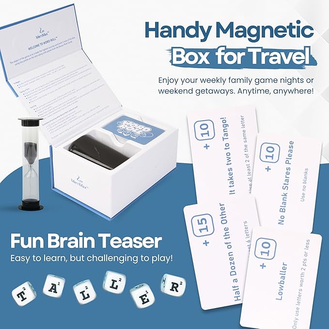 Merrimax - Word Roll Dice Game Word-Building Family for Kids and Adults/Party for Family Nights Entertaining for Adults, Dice for Kids (Card Games for All Ages)