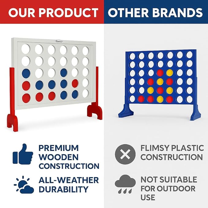 - ✅ Giant-Sized Fun – Measuring 4 feet tall, this jumbo 4-in-a-row game is larger than the traditional tabletop version, making it more engaging for both kids and adults.