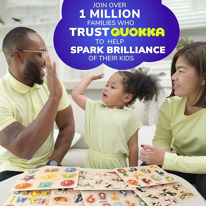 - SURPRISE YOUR KIDS: our wooden puzzles for kids 1-3 also works well as preschool puzzles for kids ages 2-4; great as indoor & outdoor activities; Kids enjoy time with friends, moms, dads, grannies while playing with modern educational toys by QUOKKA
