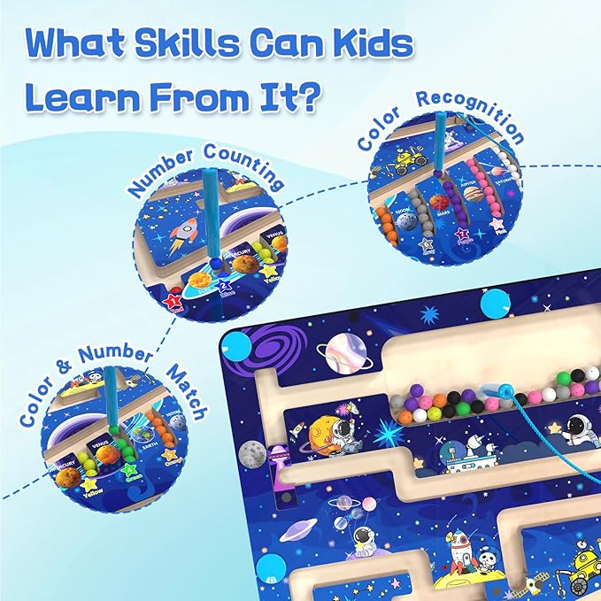 • 【Montessori-Inspired Learning】 The magnetic maze board is a fun way for children to learn while playing, practicing counting, color recognition, hand-eye coordination, and fine motor skills. Keeps kids engaged for hours.The precision required to move the tiles through the maze helps develop dexterity and control, setting the foundation for more advanced motor skills later in life.