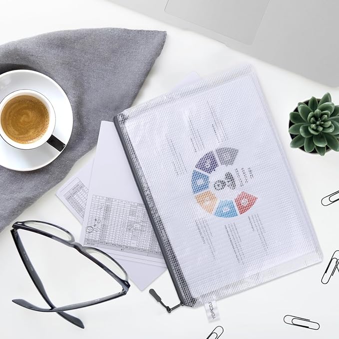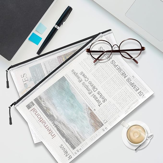 - Prmium Quality: These mesh bags are made of quality PVC, safe and non-polluting, thick mesh, and water and moisture-resistant. Protect your documents from moisture and keep them flat and clear—smooth metal zipper, sturdy