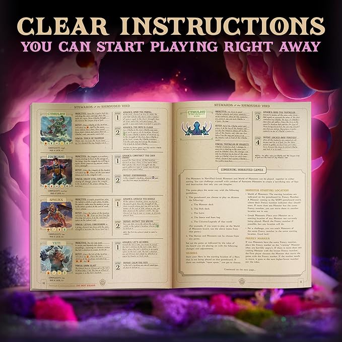 - IMMERSIVE GAMEPLAY – Sculpted miniatures capture Sphinx, Yeti, Jiangshi, and Cthulhu in exquisite detail. The devil is in the details with rich illustrations and bits of lore about this unique doorway between worlds and its mysterious stewards.