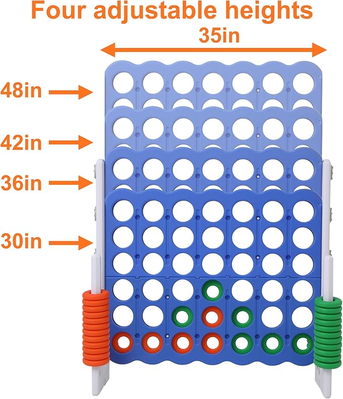 - 【Upgraded Model】: Height adjustable giant four connect in a row game encourage socializing, problem solving, matching, strategizing, focus, hand-eye coordination skills with the interactive as kids work together to win,perfect for playing with partner.