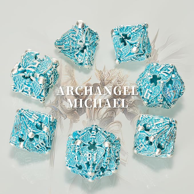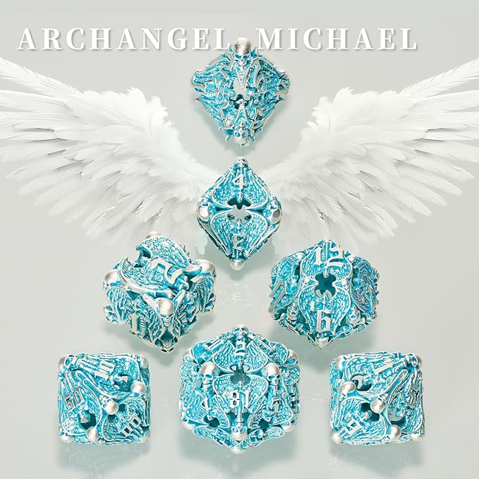 - 【Hollow Metal Dice】The dnd dice feature a cutout design with a exquisite angel pattern, which is eye-catching and well made. Dice with silver numbers can be painted with other colors by yourself to make them legible. With the hollow design, the effect is stunning and definitely stand out on the table.