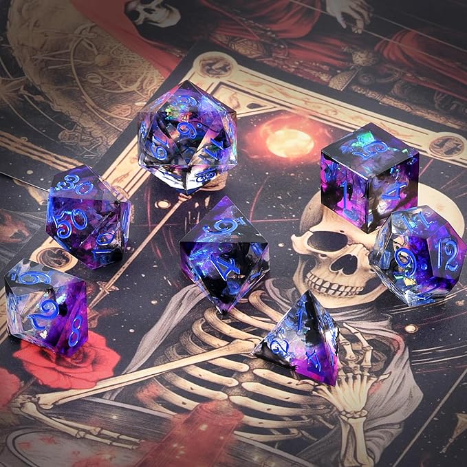 OriCraft Dark Magic Dice DND Dice Set Dungeons and Dragons Polyhedral Role Playing Gaming Dices Black Underwater World D20 Dice Sharp Corners Dices Magical World 7 Set Halloween Dices