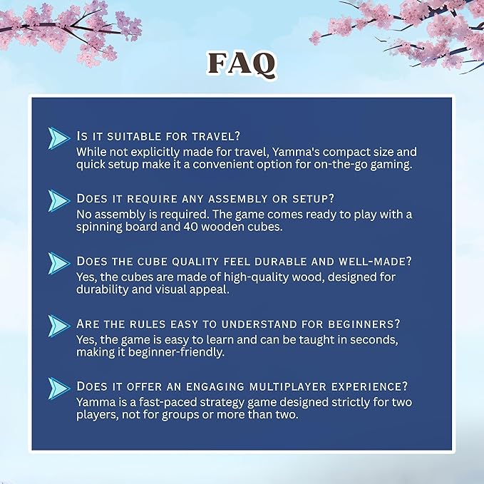 - A Game You’ll Want to Leave on the Table: With solid wooden cubes and a precision-etched spinning board, Yamma isn’t just fun to play, it’s beautiful to look at. This is a family board game you’ll proudly leave out between plays. It’s giftable, display-worthy, and a conversation starter for game lovers and design fans alike.