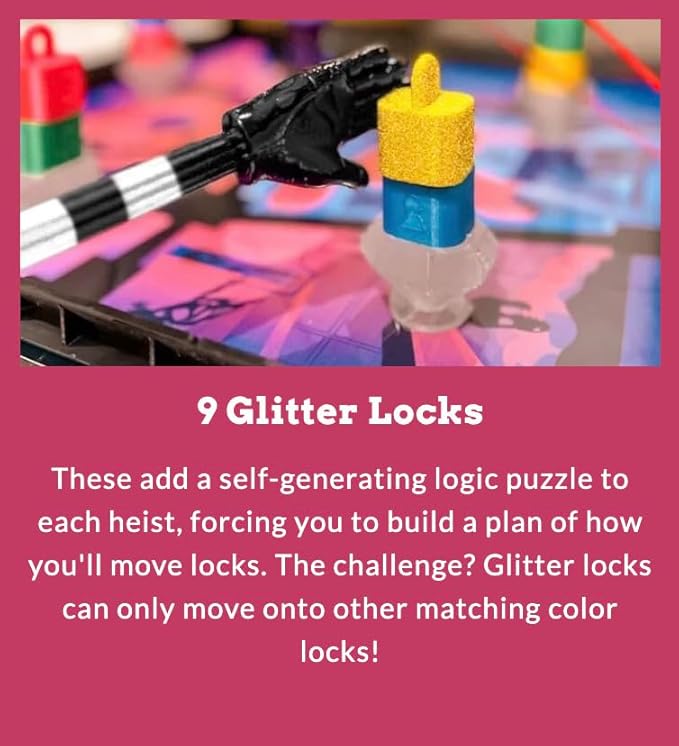 - INCLUDES THE DOUBLE CROSS EXPANSION PACK: Adds Glitter Locks (more complex puzzles), Sabotage Cards (mess with opponents), and a Bribable Guard (physical obstacle) for a more challenging and cutthroat game.