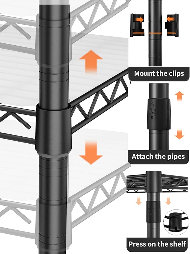 - The shelf is specially coated for protecting it from any water, rust or corrosion. Not worry to place the shelving unit in your kitchen or bathroom, easy to wipe down clean