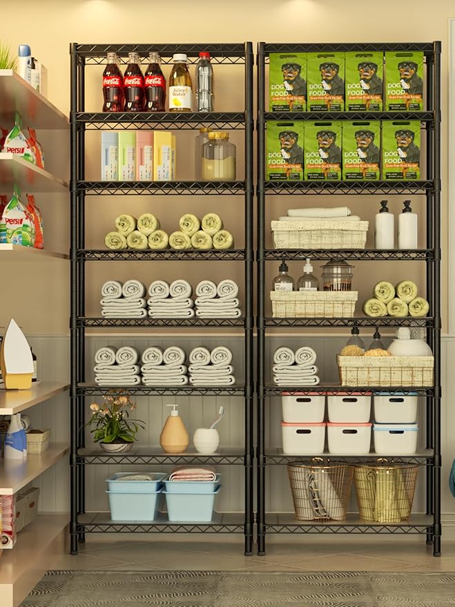 8 Tier Adjustable Storage Shelves Heavy Duty Metal Shelf Wire Shelving Unit Organizer Rack for Home Kitchen Office Pantry Room Bathroom Shelving Organizers and Storage Laundry