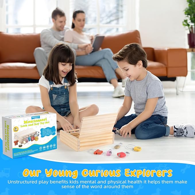 - GREAT AUTISM SENSORY TOYS: Our Montessori Lock and Key Set is filled with fun and creative challenges to give them quiet time to focus on natural learning activities. Fun parent-child games will become good communicators between children and parents. Fun interactive games can be easily started, which not only cultivates children's patience, but also allows children to concentrate on doing things with their parents