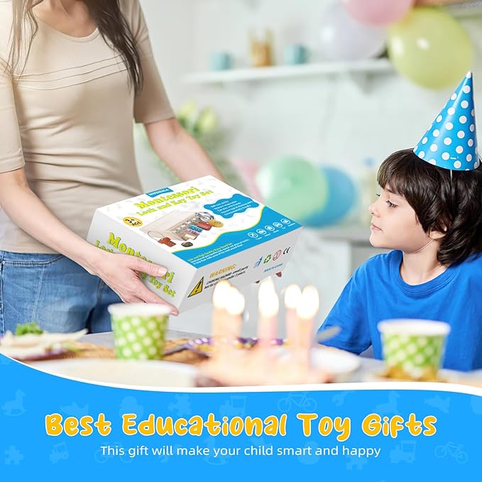 - Great Gift for Toddlers 36+ Months and Up:Beautifully packaged in blue, perfect for gifting, this board not only makes your child smart and happy, but also gives him or her the satisfaction of completing real-life tasks, suitable for many occasions, such as family time, Christmas parties, birthdays, preschool, Vacations, outdoor gardens and anywhere you want. It makes a great gift for children ages 3+, toddlers, preschool boys and girls
