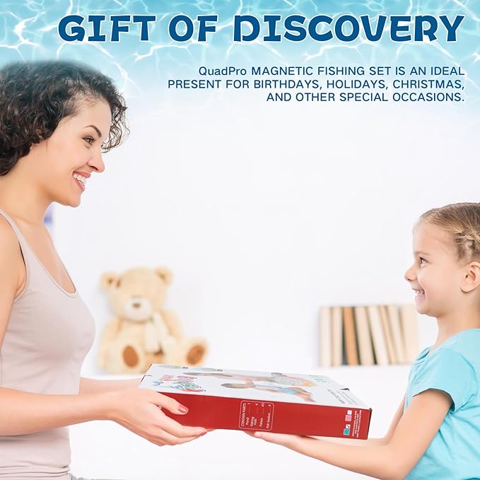 - 【PERFECT GIFT CHOICE】The QuadPro Magnetic Fishing Games Set is an ideal present for birthdays, holidays, Christmas, and other special occasions. Beautifully packaged, it will light up a child's face and create cherished memories. Give the gift of fun, learning, and joy with this delightful fishing game.