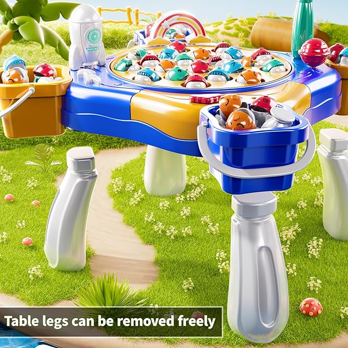 - Safe And Portable - The fishing game is constructed from ABS plastic, making it BPA-free, non-toxic. The detachable support feet provide stability and can beaeasily removed for portability. Perfect indoor and outdoor toy for kids aged 3 4 5 6 7 8 years old.