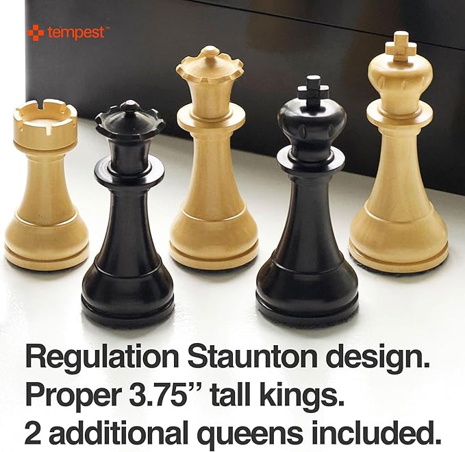 - Includes a set of Tempest championship chess pieces with regulation size: 3.75" Kings, 2 extra queens, EXTRA heavy-weighted, hand-carved in sustainable Boxwood and Ebonized Boxwood: perfectly proportioned to our MagSplit board.