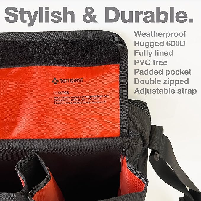 - Includes the bespoke Tempest All-In deluxe weatherproof messenger-style chess bag, for easy, compact, protected grab and go: even with a full-sized wooden board! A pocket for everything! So well thought-through.