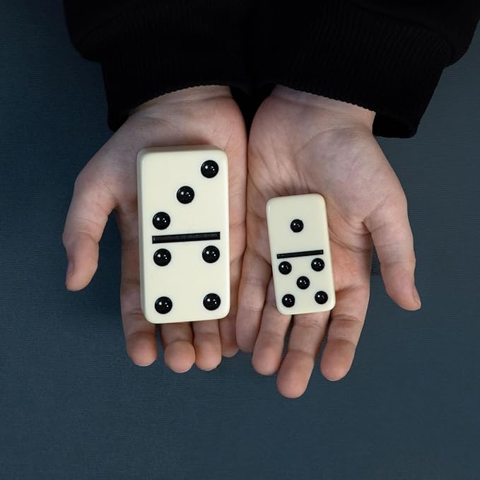 - [Unique Size? Oh yeah] Each of these domino tile measures a glorious 3" x 1.5" x 3/4" (75 x 37 x 16 mm); This Mega dominoes set for adults is so big, people will stop mid-game and go, “Wait… is that normal?” No, Karen, it’s MEGA.
