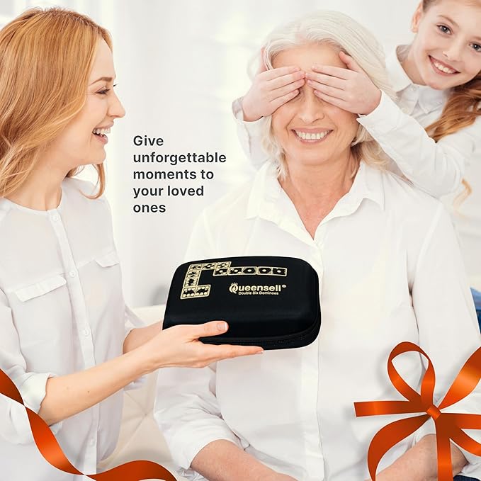 Queensell Dominos Set for Adults with 4 Domino Racks - Double 6 Dominoes Set with Domino Holder, Classic Board Games for Kids and Adults - Double Six Standard Dominos Set 28 Tiles with Travel Case