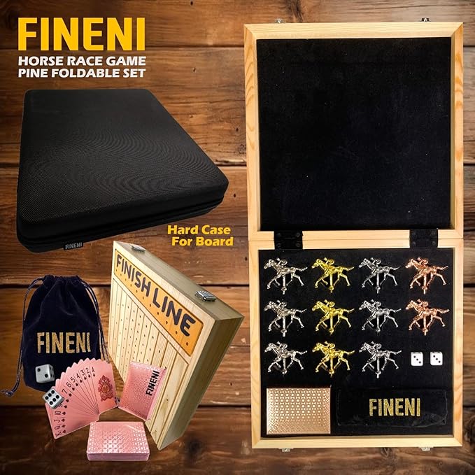 - High-Quality Foldable Pine Wood Game Board – 22” real pine wood board with a smooth, polished finish, designed for an authentic and professional racing experience. Perfect for an exciting foldable horse race game board for adults.