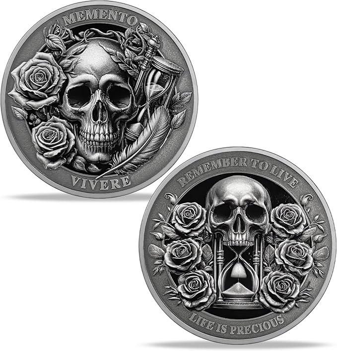 - Premium Material: The Momento mori Flipping Coin is made of high-quality zinc alloy to ensure its durability and longevity. This medal is not just a worry medal or a luck medal, it is an everyday Stoic medal designed to inspire reflection on the brevity of life and the importance of living each day with purpose.Coin is 1.57 inches in Diameter.